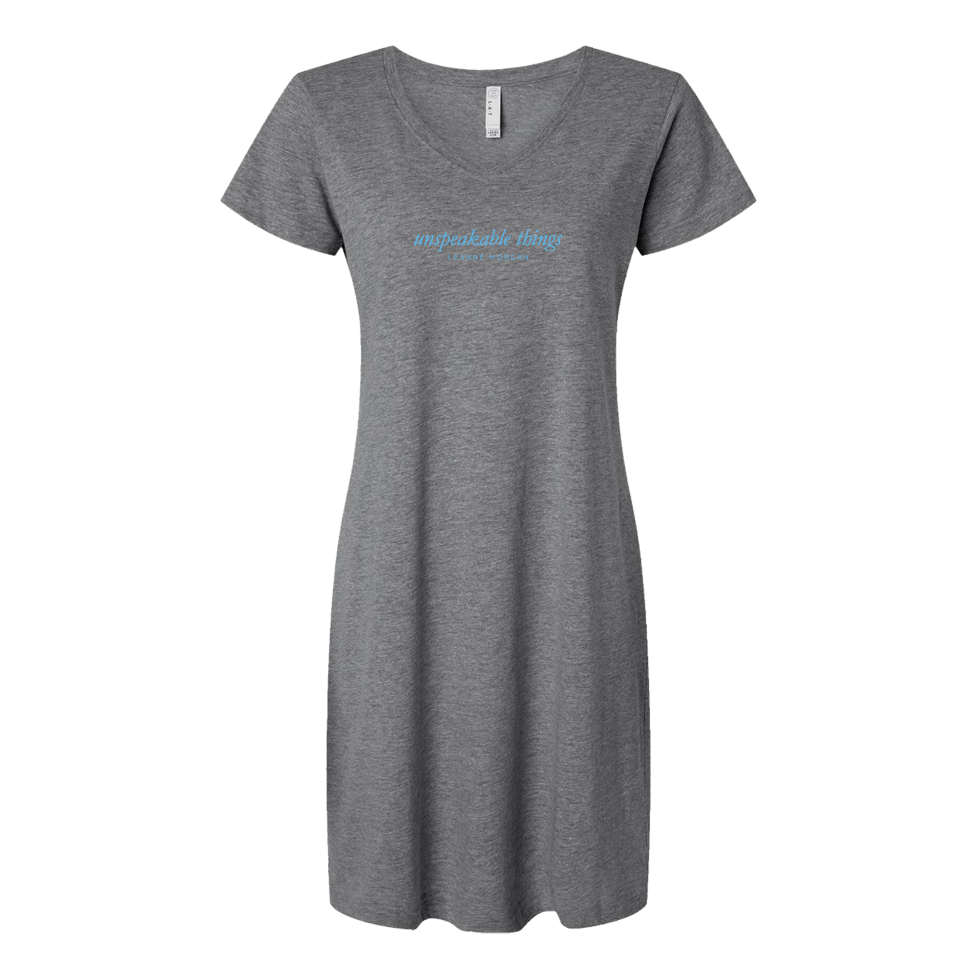Unspeakable things grey v-neck nightgown with blue screenprint